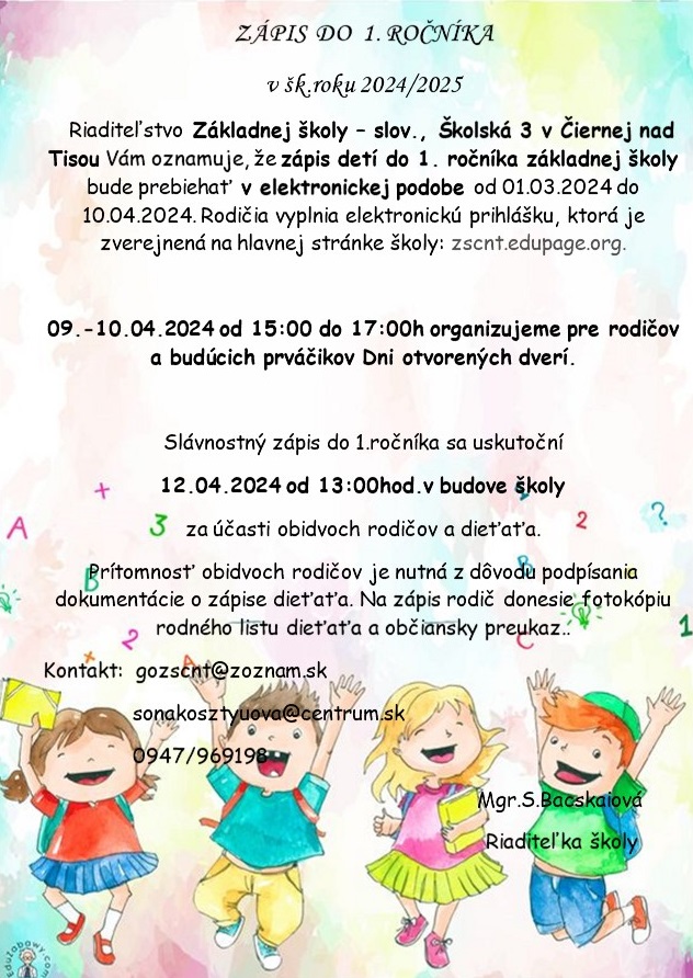 Zápis žiakov do 1. ročníka 2024/2025 - ZŠ VJS